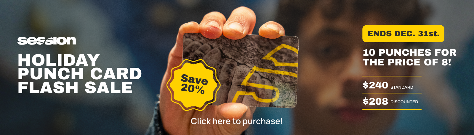 Until December 31st, we’re having a sale on our Punch Cards! Save 20% off the cost of 10 Day Passes when you buy in bulk.
